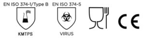 - EN ISO 374-1 Type B (KMTPS) /2/4. Protección contra riesgos químicos.